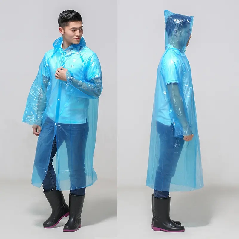 3. Cost-effective: Compared to reusable raincoats, disposable raincoats are generally more affordable. They are commonly available in bulk packages, making them an economical choice for events, outdoor activities, or travel where multiple raincoats may be needed.